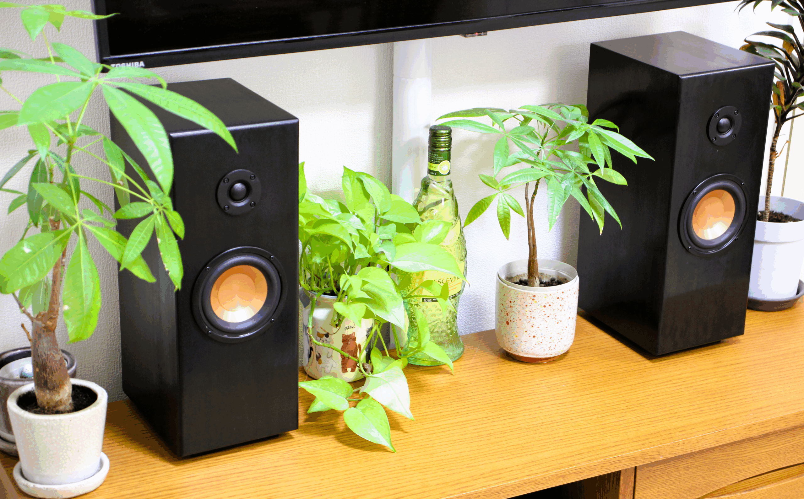 本機は左右セパレート型のパッシブスピーカーで、アンプ内蔵のアクティブスピーカーや一体型スピーカーに比べ、音質面での制約が少なく、よりクリアで自然な再生が可能です。