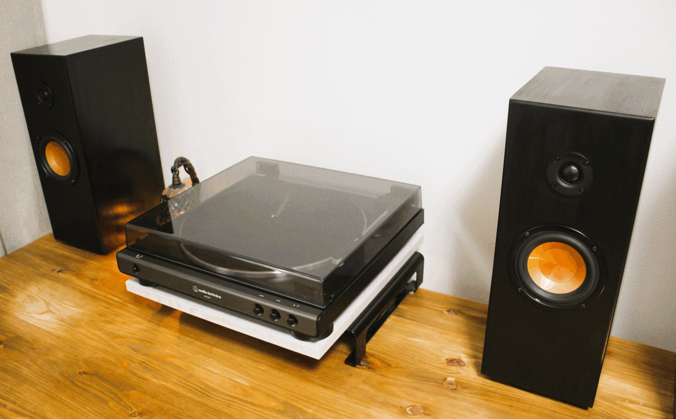 特別なスタンドや複雑なセッティングは不要です。平らな場所に置くだけで、KHシステムが心地よい高音質と広がりのある音場を再現します。